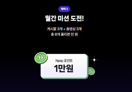 미션 완료하면 예산 소진시까지 1만원 포인트 받을 수 있고, 이달의 챌린저로 선정되면 최대 9만원까지 포인트 받을 수 있다고 해요..!