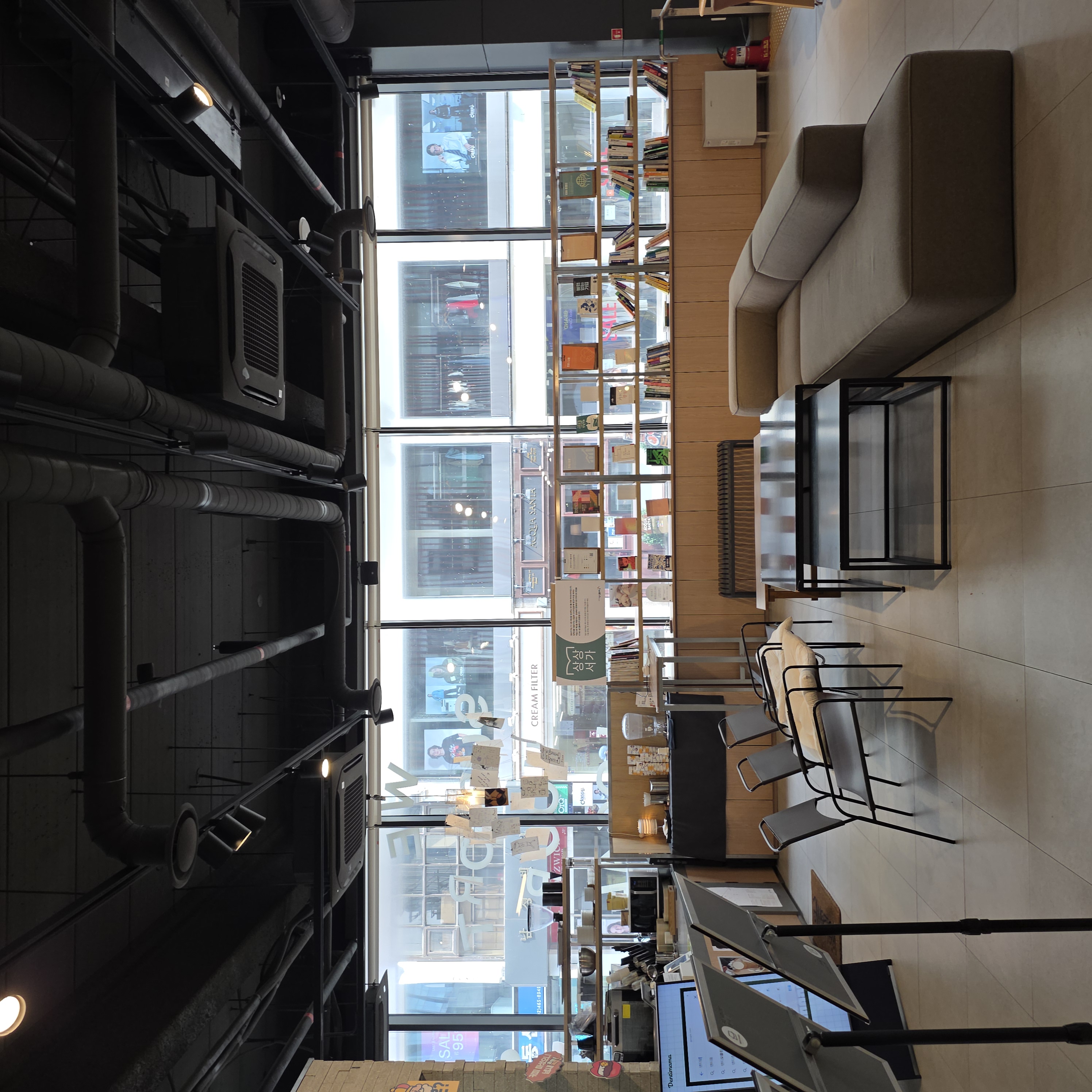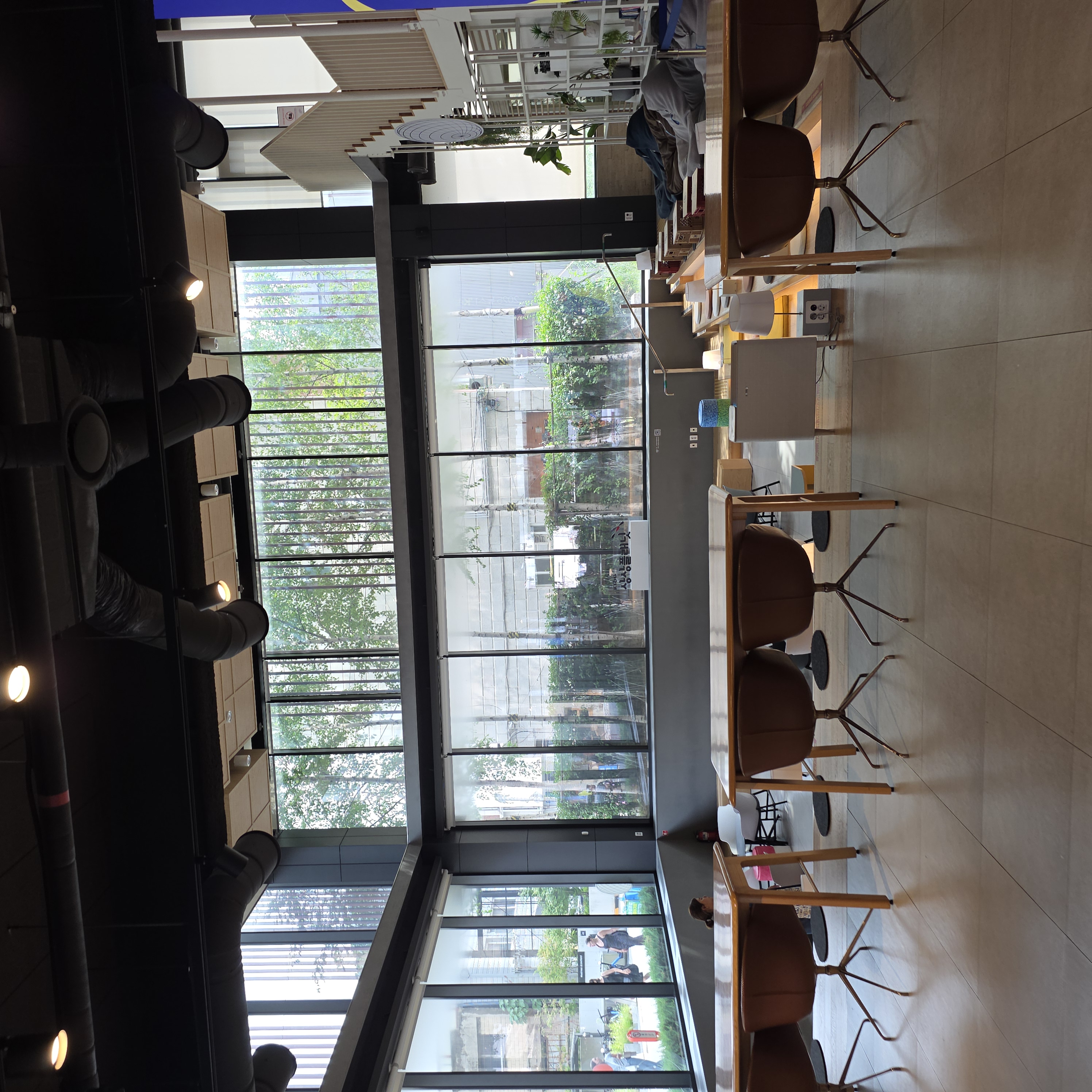 1층의 모습입니다. 1층에는 카페도 있어서 음료도 주문하실 수 있어요! 다른 외부 음식물은 반입 금지입니다..!