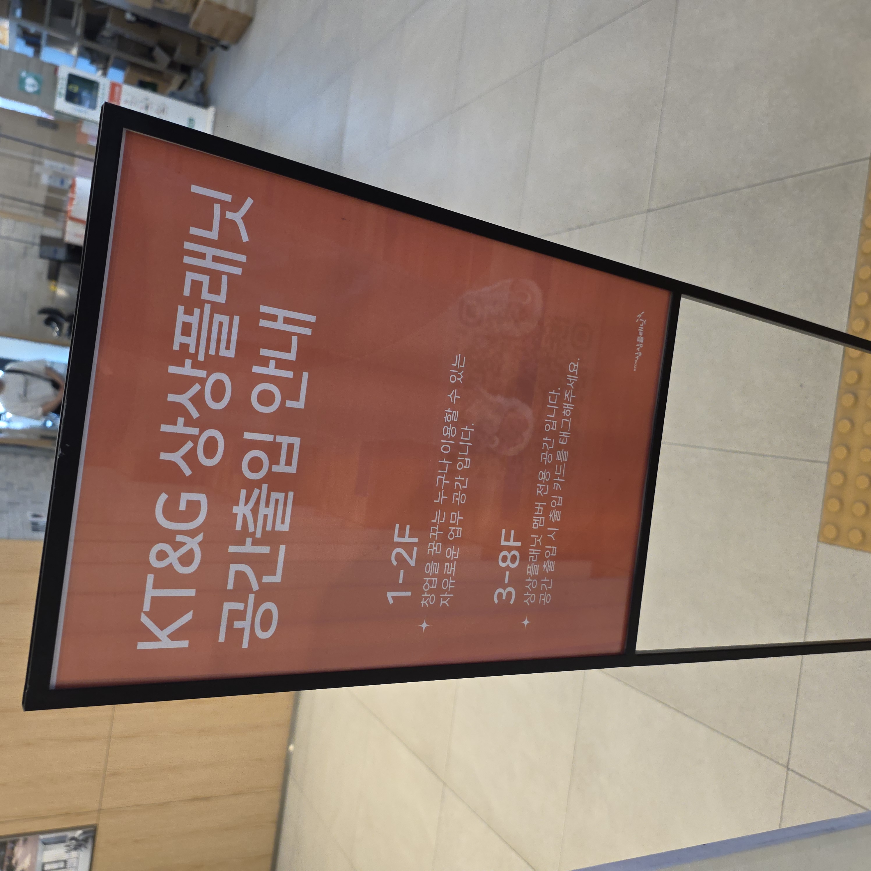 1~2층은 누구나 자유롭게 사용 가능하고, 3~8층은 상상플래닛 멤버만 사용 가능하다고 합니다. 다만 앞서 말했듯이 외부 음식물은 반입 금지에요!